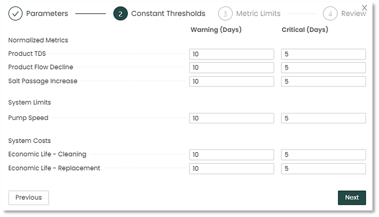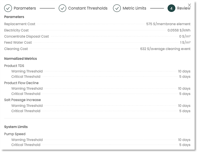 4. Third, you can change or adjust threshold values of the different metrics, for example if a new pump is installed that has a higher speed threshold.