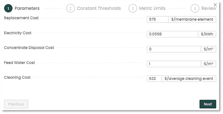 2. In the new settings window, adjust the membrane service costs.